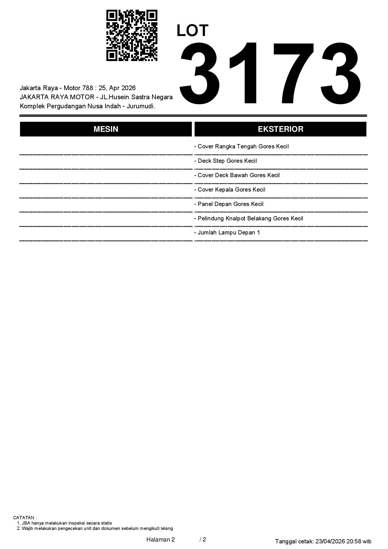 2. Peserta lelang wajib cek unit & dokumen