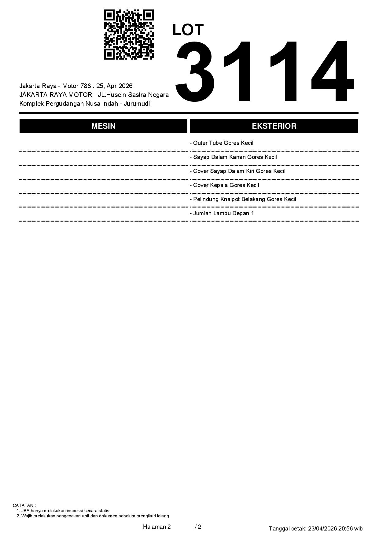 2. Peserta lelang wajib cek unit & dokumen