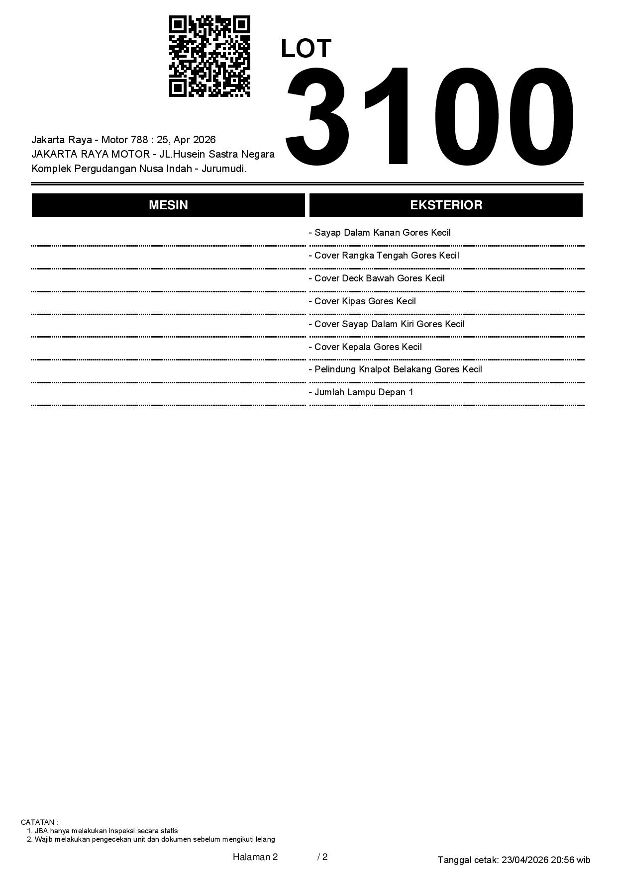 2. Peserta lelang wajib cek unit & dokumen