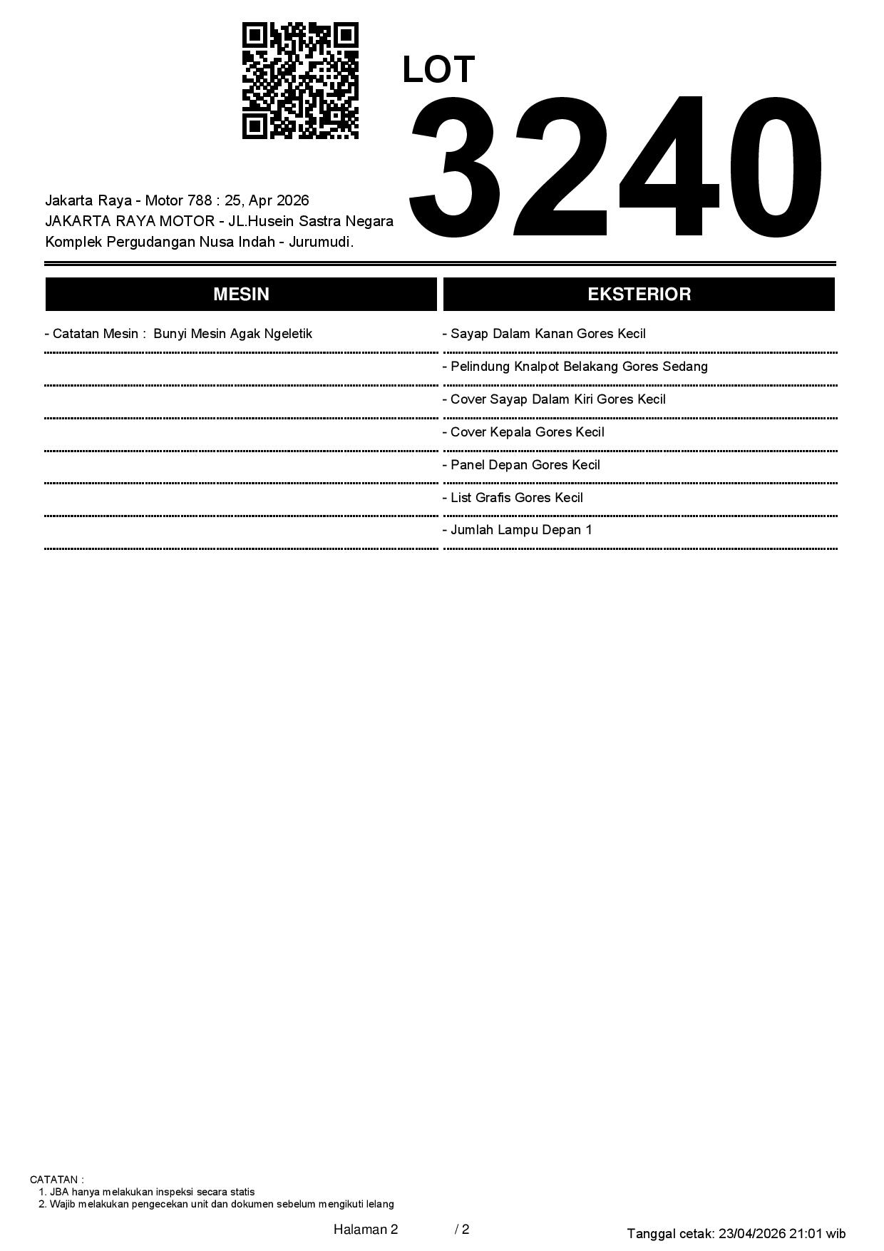 2. Peserta lelang wajib cek unit & dokumen