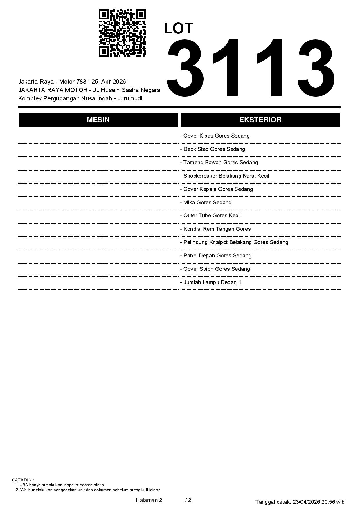 2. Peserta lelang wajib cek unit & dokumen