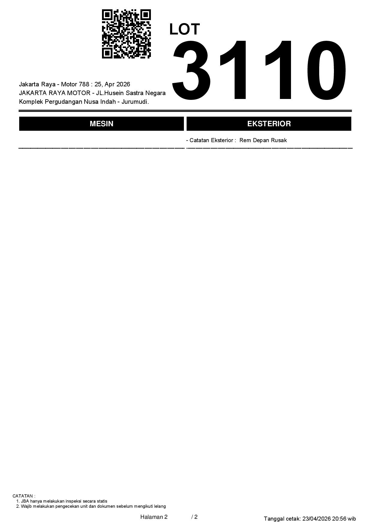 2. Peserta lelang wajib cek unit & dokumen