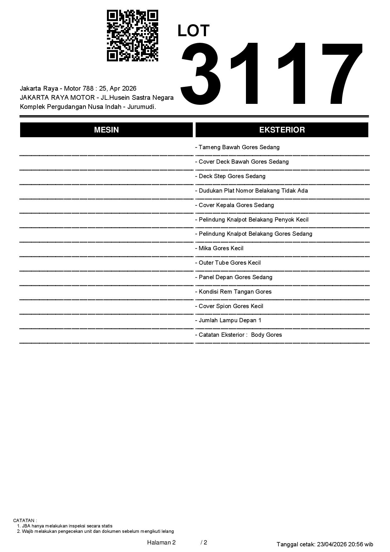 2. Peserta lelang wajib cek unit & dokumen