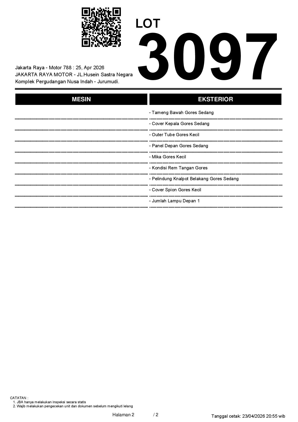 2. Peserta lelang wajib cek unit & dokumen