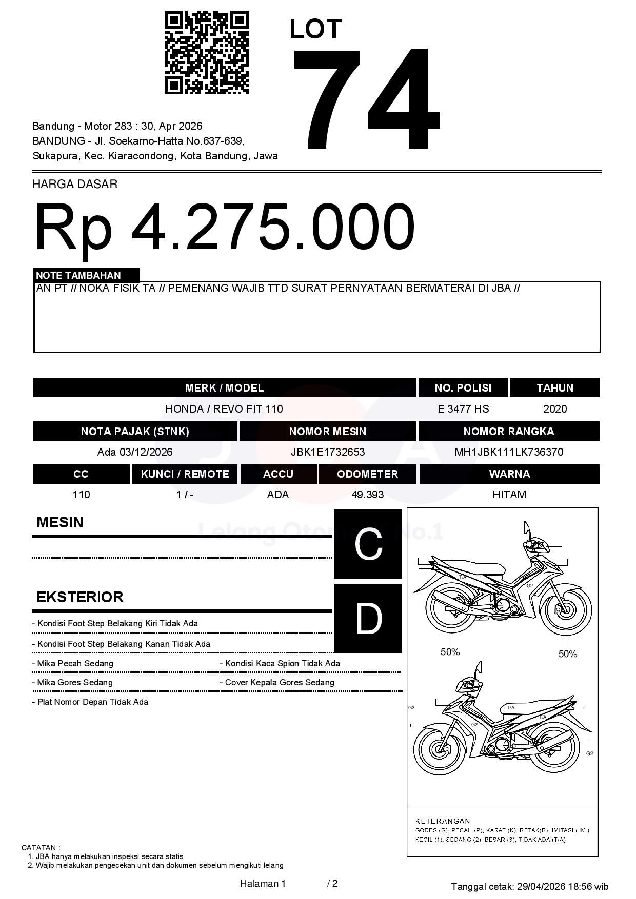 AN PT // NOKA FISIK TA // PEMENANG WAJIB TTD SURAT PERNYATAAN BERMATERAI DI JBA //