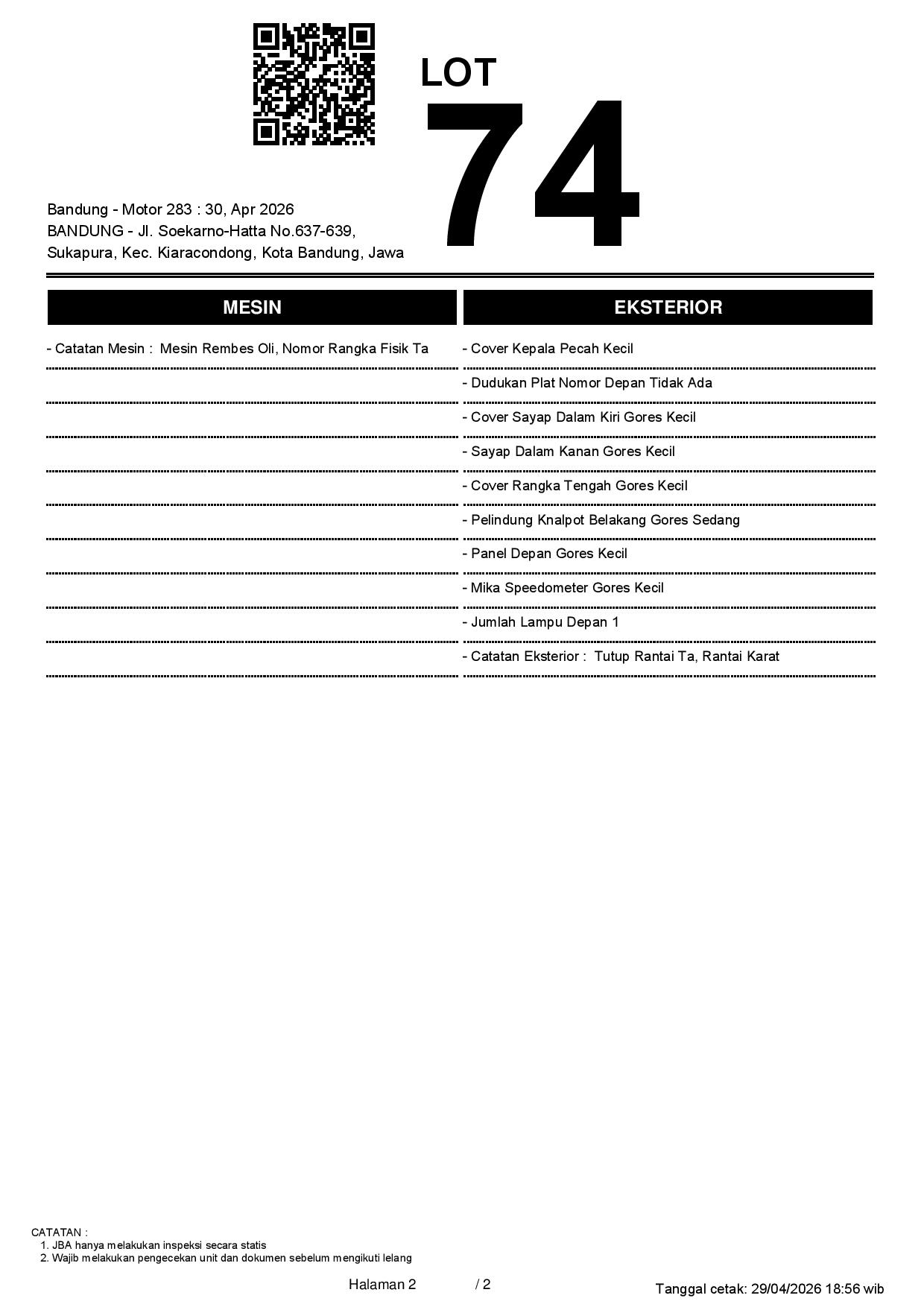 1. Peserta lelang wajib cek unit & dokumen