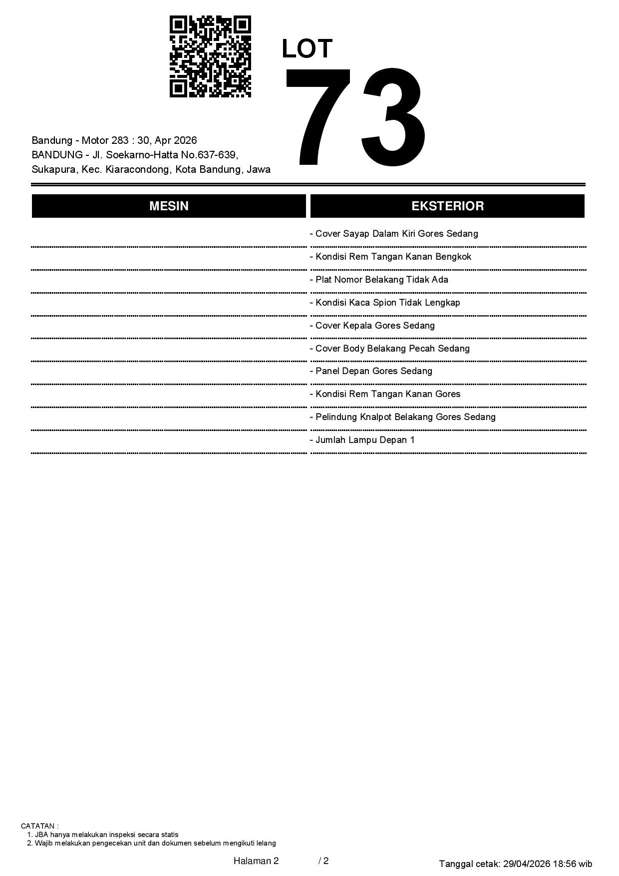 1. Peserta lelang wajib cek unit & dokumen