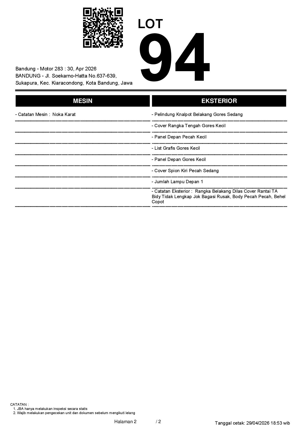 1. Peserta lelang wajib cek unit & dokumen