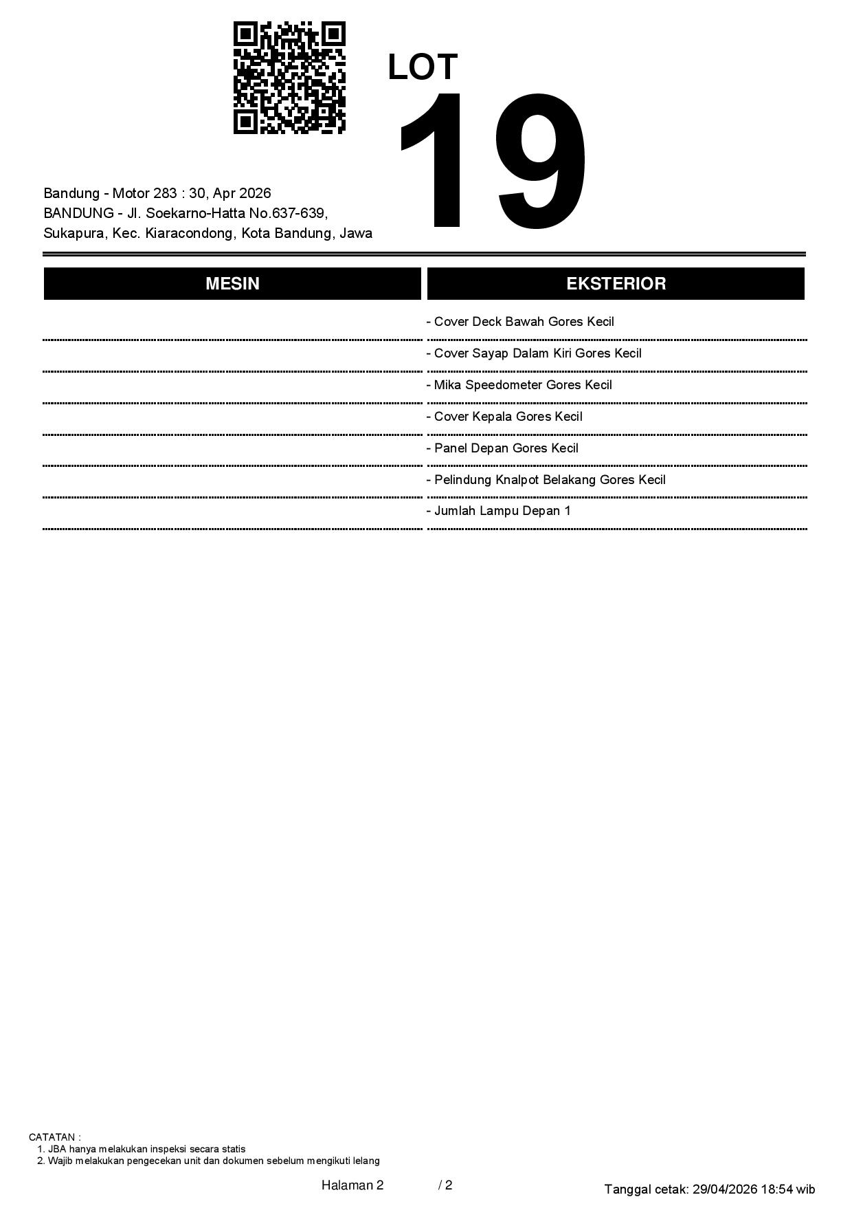 2. Peserta lelang wajib cek unit & dokumen