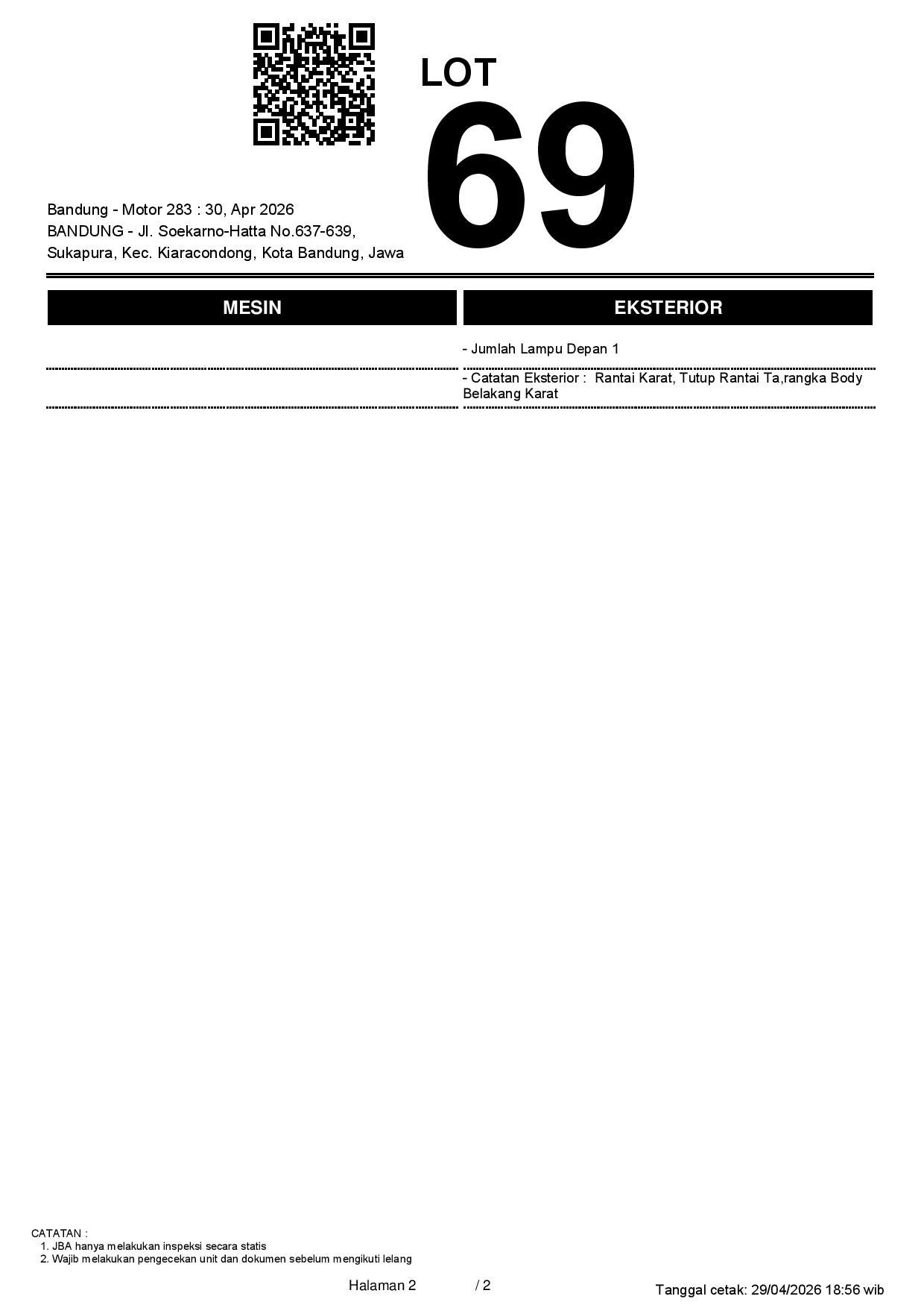 1. Peserta lelang wajib cek unit & dokumen