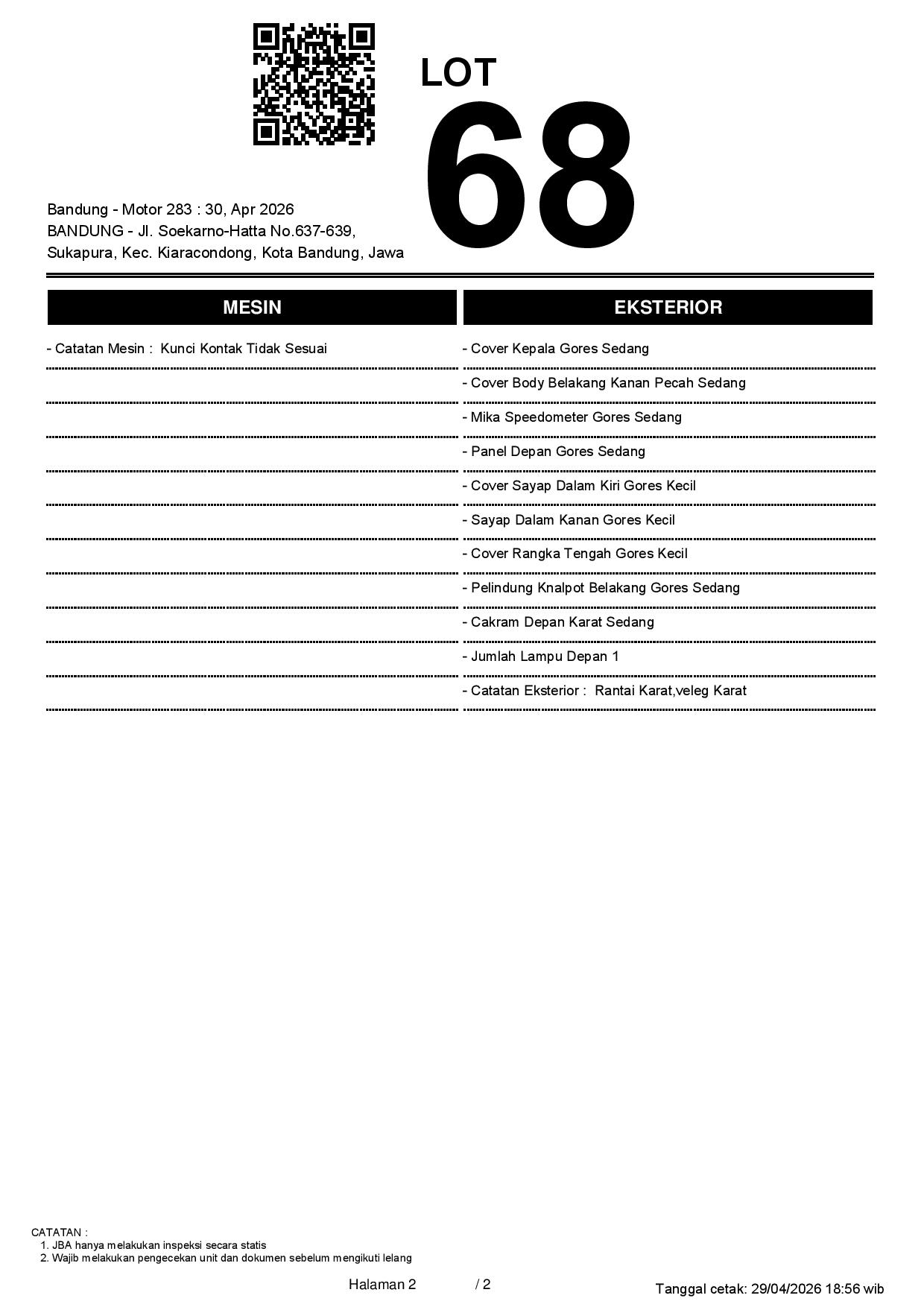 1. Peserta lelang wajib cek unit & dokumen