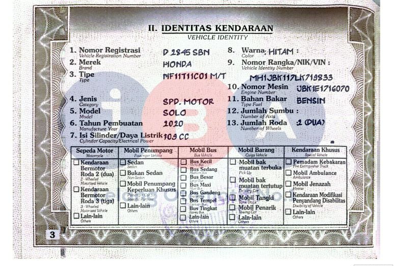 A N PT// WARNA PADA DOK HITAM // NOPOL BELAKANG TA //