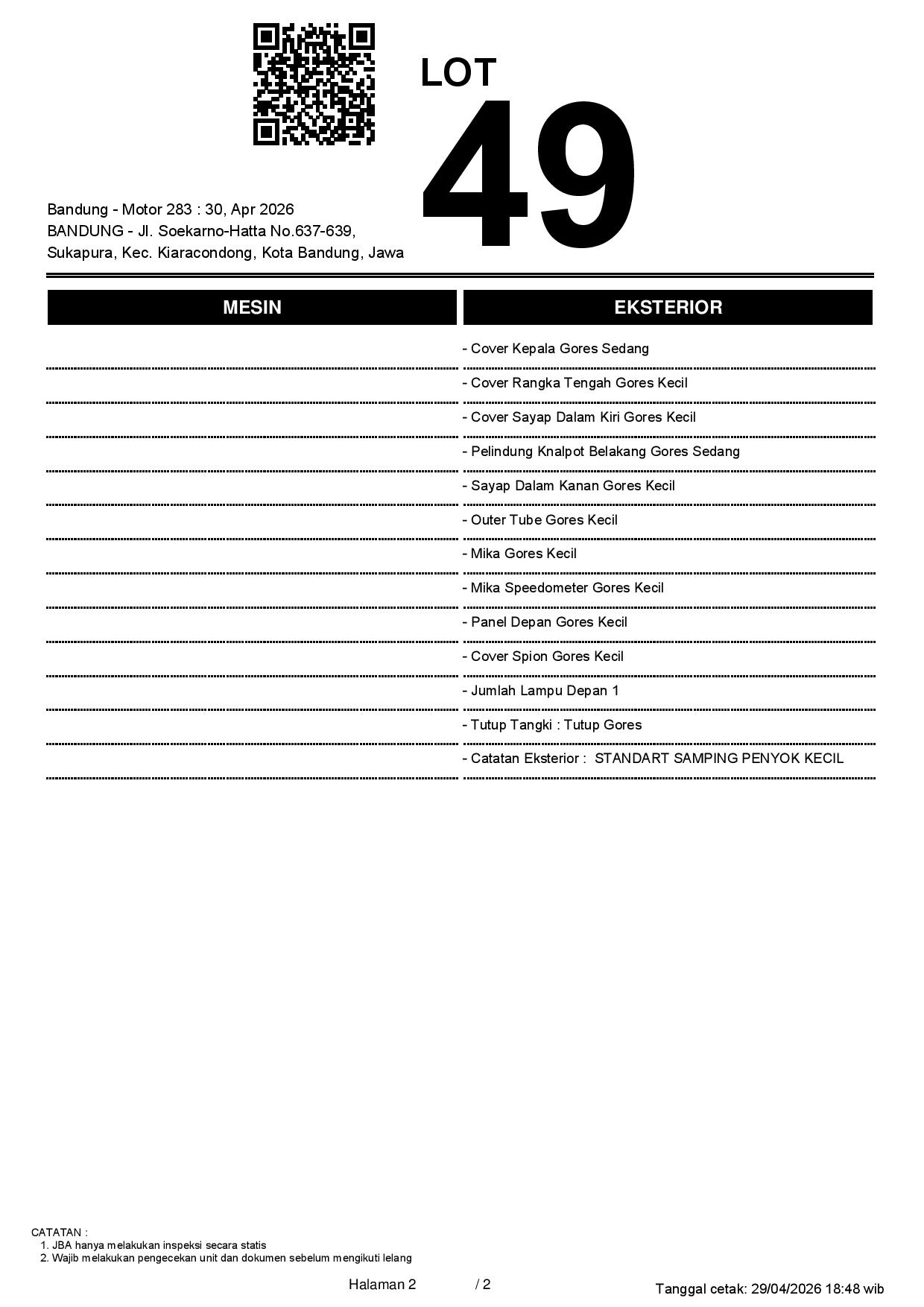 1. Peserta lelang wajib cek unit & dokumen