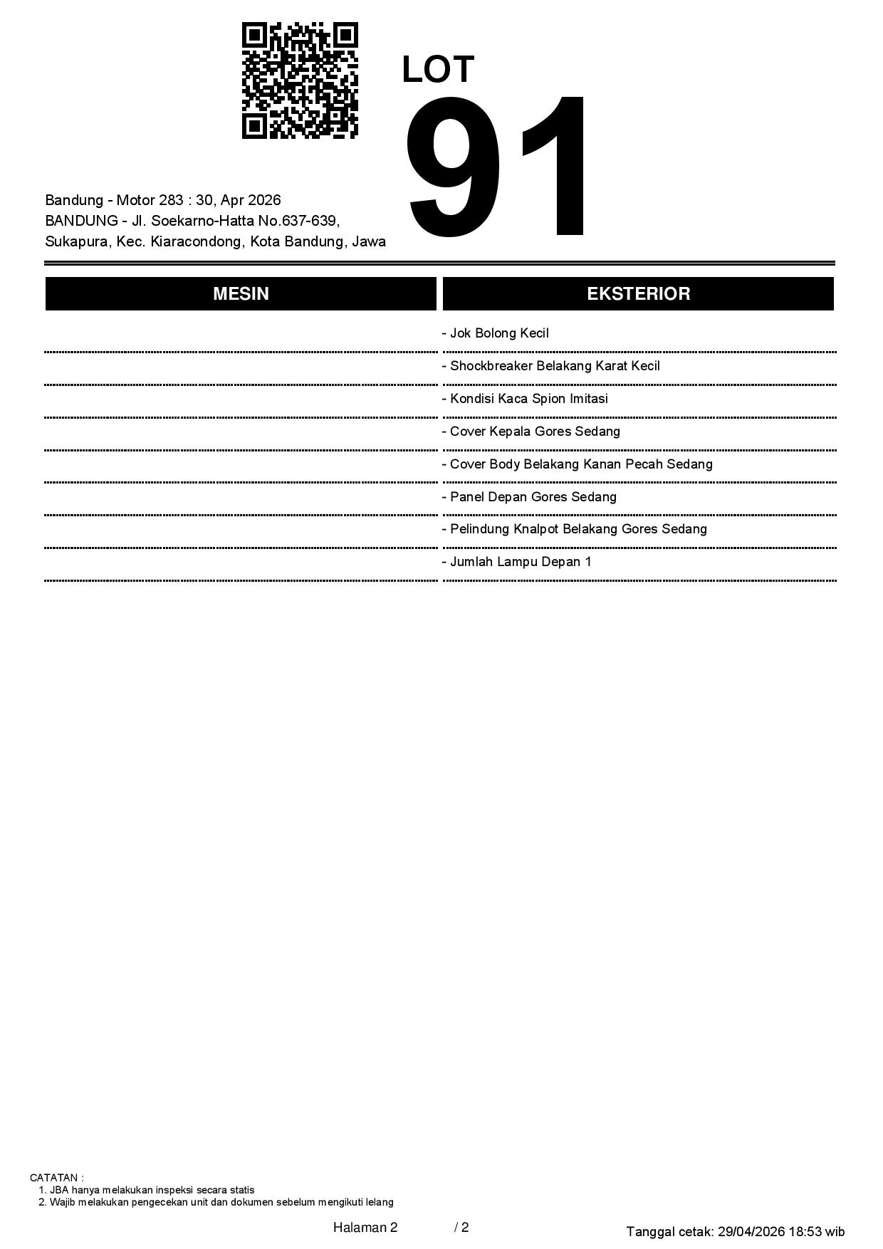 1. Peserta lelang wajib cek unit & dokumen