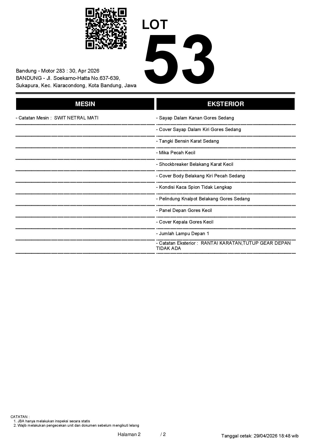 1. Peserta lelang wajib cek unit & dokumen