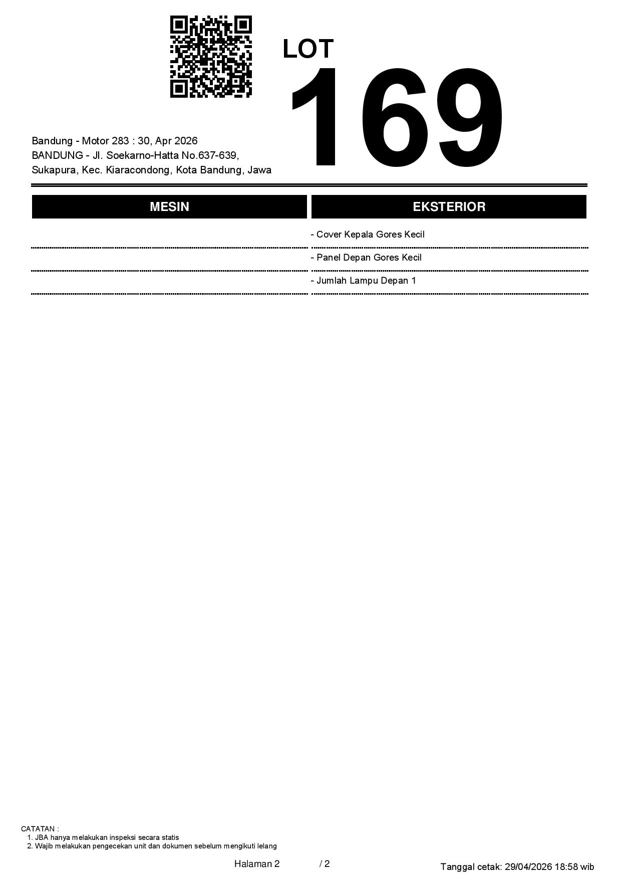 2. Peserta lelang wajib cek unit & dokumen