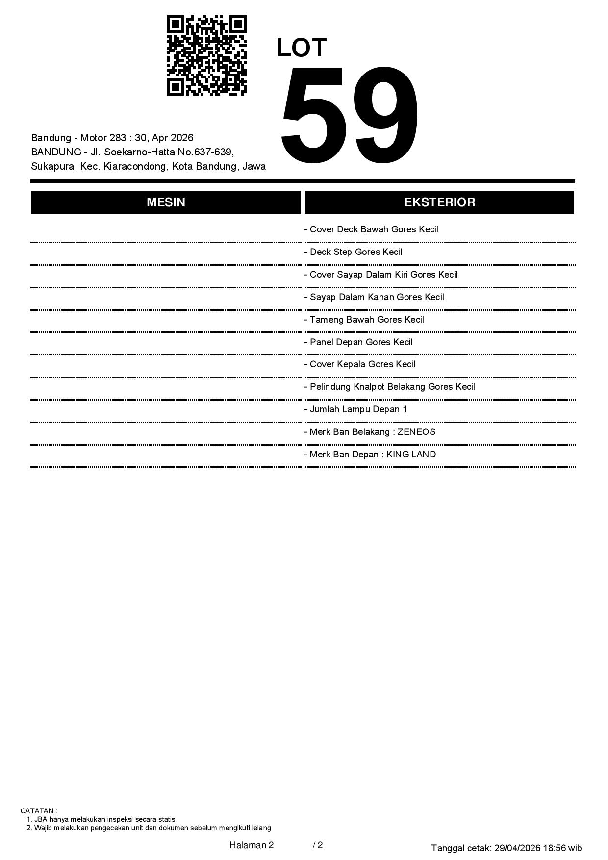 2. Peserta lelang wajib cek unit & dokumen