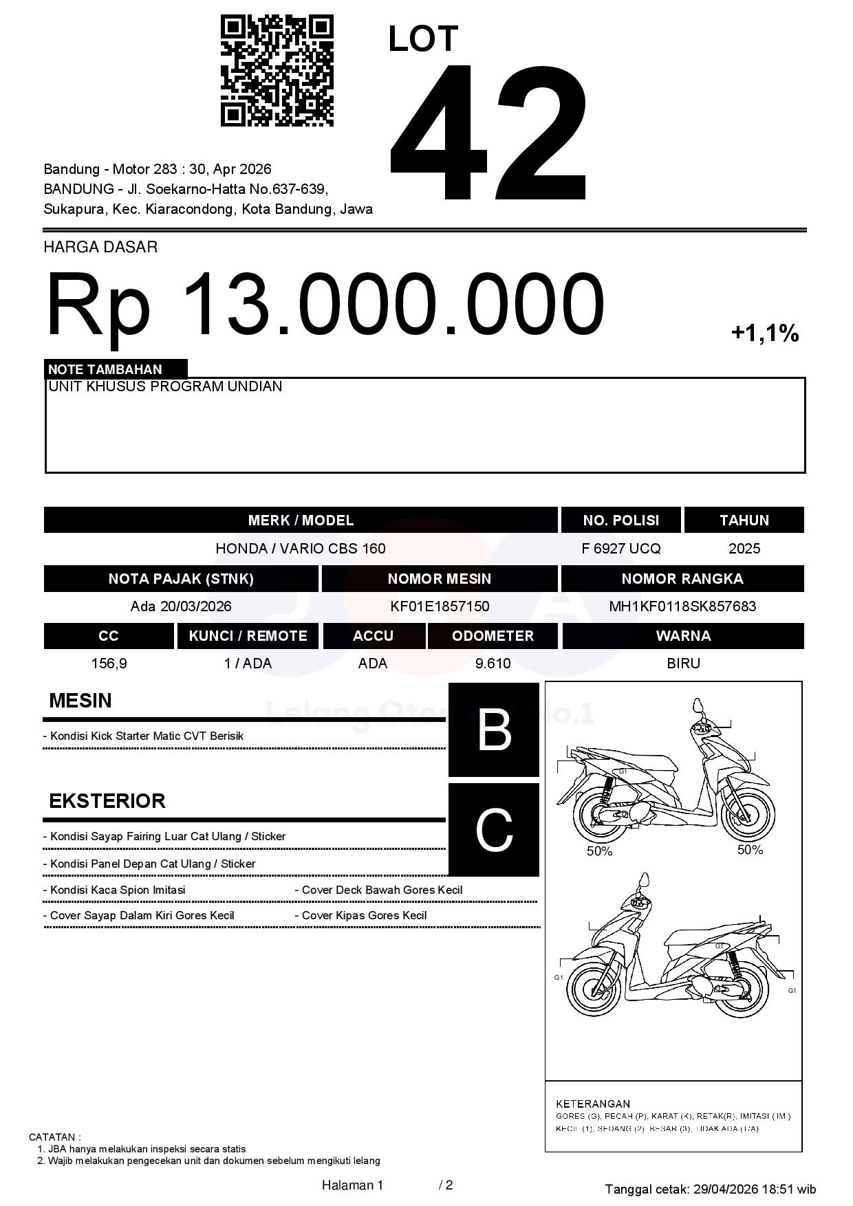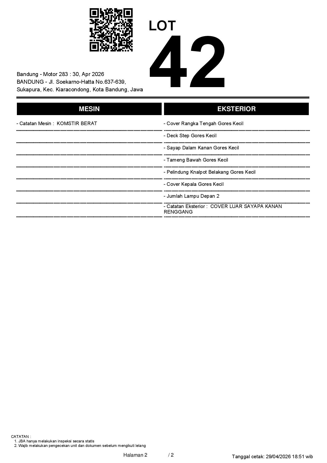 2. Peserta lelang wajib cek unit & dokumen